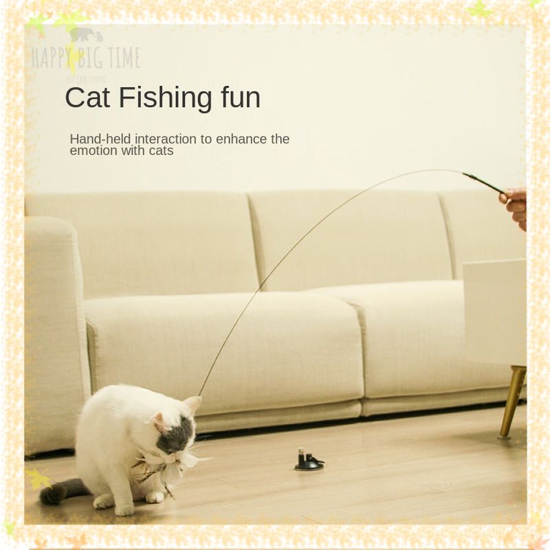Cat Stick Long Rod Teaser Cat Stick Feather Bell Sucker Fixed Cat Interactive Toy Cat Accessories